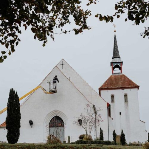 APOS har mange års erfaring med kalkning af kirker, slotte og andre historiske bygninger i hele Sønderjylland. Vi arbejder med klassiske materialer og metoder, der bevarer bygningernes sjæl – samtidig med at vi sikrer en holdbar og smuk overflade.